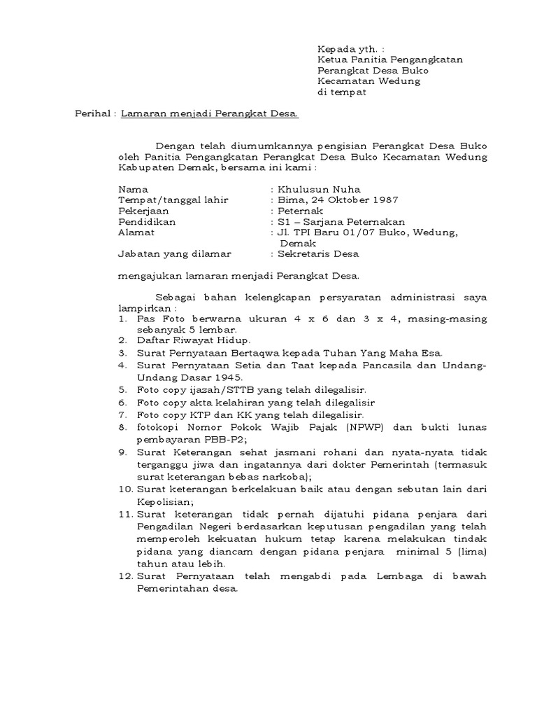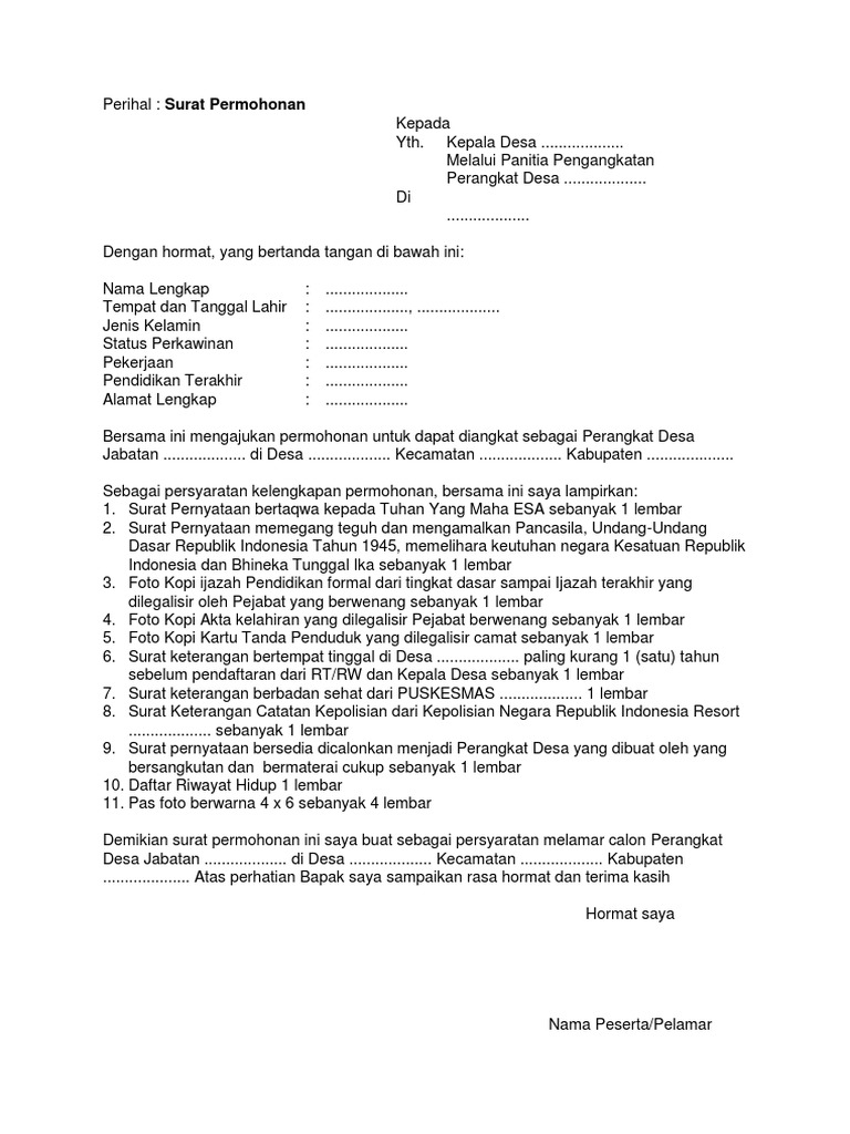 Contoh Surat Permohonan Lamaran Perangkat Desa Pdf